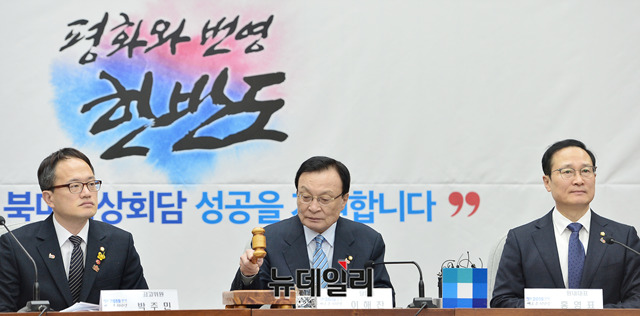 이해찬 더불어민주당 대표가 27일 오전 국회에서 열린 확대간부회의에서 회의를 진행했다.