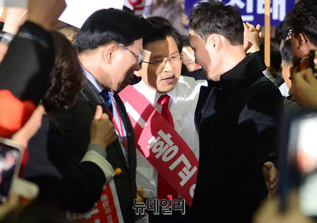 황교안 자유한국당 당대표 후보가 27일 오후 경기 일산 킨텍스에서 열린 2·27 전당대회에 입장하고 있다.당대표 후보에는 김진태, 황교안, 오세훈이 나섰다. 최고위원에는 김정희 한국무궁화회 총재, 윤재옥 의원, 윤영석 의원, 김순례 의원, 조대원 경기 고양시정 당협위원장, 김광림 의원, 조경태 의원, 정미경 전 의원 등 8명이 나섰다. 청년 최고위원에는 신보라, 김준교, 이근열, 박진호 등 4명이 이름을 올렸다.이번 전당대회는 선거인단 투표와 국민여론 조사결과, 전당대회 현장에서 진행되는 대의원 투표결과를 합산해 새지도부를 선출한다. 투표결과는 오후 7시 발표 예정이다.
