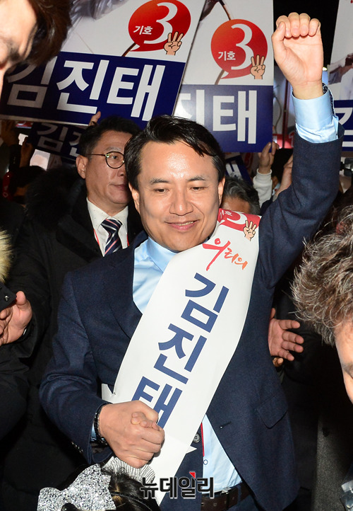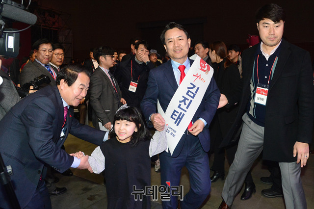 김진태 자유한국당 당대표 후보가 27일 오후 경기 일산 킨텍스에서 열린 2·27 전당대회에 입장하고 있다.당대표 후보에는 김진태, 황교안, 오세훈이 나섰다. 최고위원에는 김정희 한국무궁화회 총재, 윤재옥 의원, 윤영석 의원, 김순례 의원, 조대원 경기 고양시정 당협위원장, 김광림 의원, 조경태 의원, 정미경 전 의원 등 8명이 나섰다. 청년 최고위원에는 신보라, 김준교, 이근열, 박진호 등 4명이 이름을 올렸다.이번 전당대회는 선거인단 투표와 국민여론 조사결과, 전당대회 현장에서 진행되는 대의원 투표결과를 합산해 새지도부를 선출한다. 투표결과는 오후 7시 발표 예정이다.
