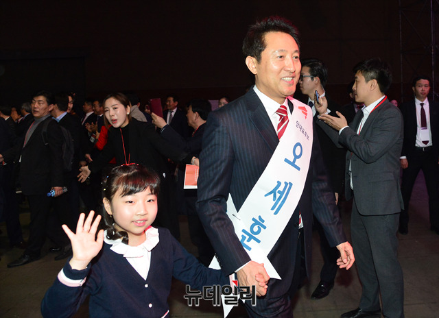오세훈 자유한국당 당대표 후보가 27일 오후 경기 일산 킨텍스에서 열린 2·27 전당대회에 입장하고 있다.당대표 후보에는 김진태, 황교안, 오세훈이 나섰다. 최고위원에는 김정희 한국무궁화회 총재, 윤재옥 의원, 윤영석 의원, 김순례 의원, 조대원 경기 고양시정 당협위원장, 김광림 의원, 조경태 의원, 정미경 전 의원 등 8명이 나섰다. 청년 최고위원에는 신보라, 김준교, 이근열, 박진호 등 4명이 이름을 올렸다.이번 전당대회는 선거인단 투표와 국민여론 조사결과, 전당대회 현장에서 진행되는 대의원 투표결과를 합산해 새지도부를 선출한다. 투표결과는 오후 7시 발표 예정이다.
