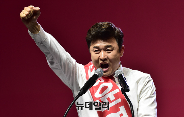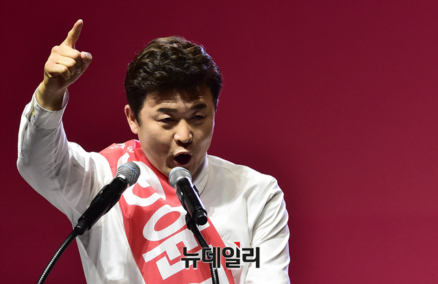 윤영석 자유한국당 최고위원 후보가 18일 오후 경기 일산 킨텍스에서 열린 2·27 전당대회에서 정견발표를 하고 있다.당대표 후보에는 김진태, 황교안, 오세훈이 나섰다. 최고위원에는 김정희 한국무궁화회 총재, 윤재옥 의원, 윤영석 의원, 김순례 의원, 조대원 경기 고양시정 당협위원장, 김광림 의원, 조경태 의원, 정미경 전 의원 등 8명이 나섰다. 청년 최고위원에는 신보라, 김준교, 이근열, 박진호 등 4명이 이름을 올렸다.이번 전당대회는 선거인단 투표와 국민여론 조사결과, 전당대회 현장에서 진행되는 대의원 투표결과를 합산해 새지도부를 선출한다. 투표결과는 오후 7시 발표 예정이다.