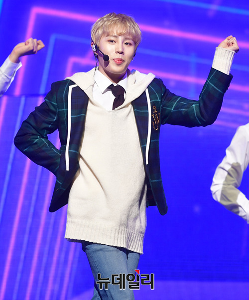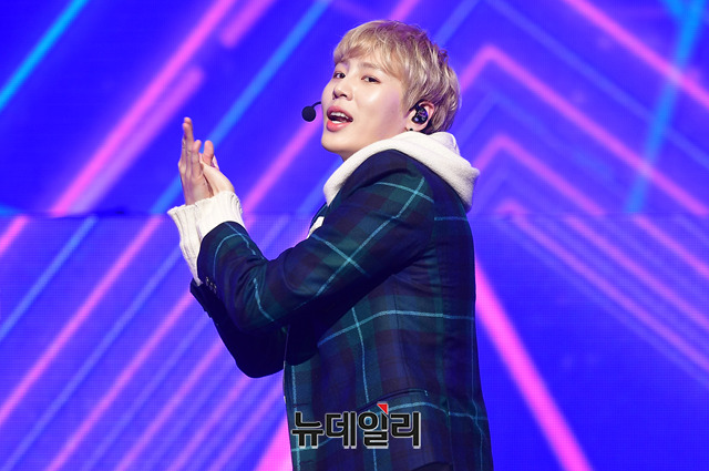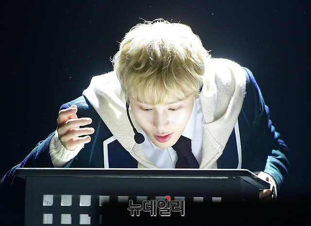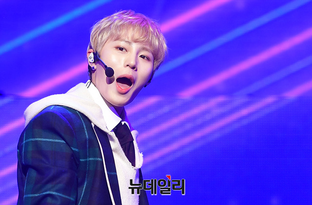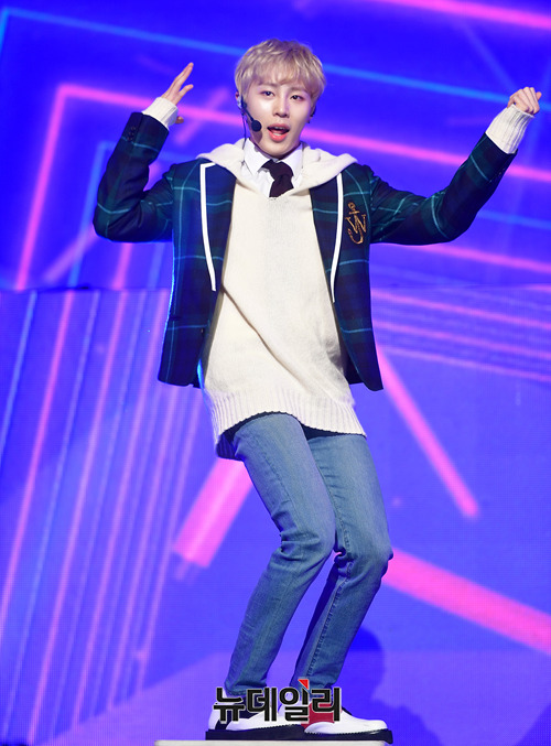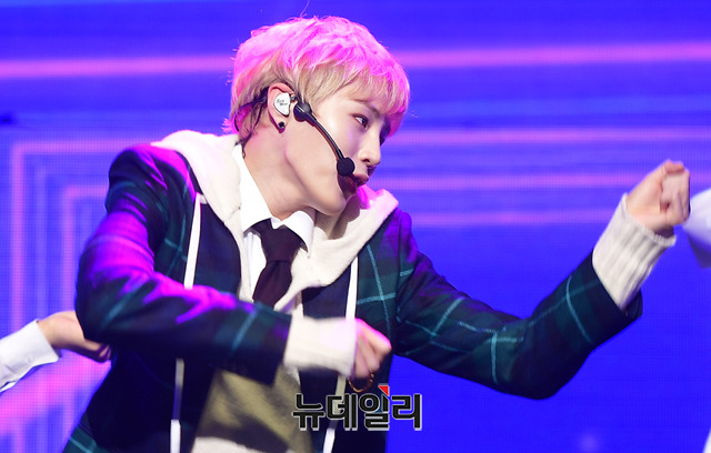 워너원 출신 하성운이 27일 오후 서울 광진구 예스24 라이브홀에서 첫 번째 미니앨범 'My Moment(마이 모멘트)' 쇼케이스에서 타이틀곡 무대를 선보이고 있다.