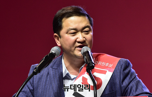 조대원 자유한국당 최고위원 후보가 18일 오후 경기 일산 킨텍스에서 열린 2·27 전당대회에서 정견발표를 하고 있다.당대표 후보에는 김진태, 황교안, 오세훈이 나섰다. 최고위원에는 김정희 한국무궁화회 총재, 윤재옥 의원, 윤영석 의원, 김순례 의원, 조대원 경기 고양시정 당협위원장, 김광림 의원, 조경태 의원, 정미경 전 의원 등 8명이 나섰다. 청년 최고위원에는 신보라, 김준교, 이근열, 박진호 등 4명이 이름을 올렸다.이번 전당대회는 선거인단 투표와 국민여론 조사결과, 전당대회 현장에서 진행되는 대의원 투표결과를 합산해 새지도부를 선출한다. 투표결과는 오후 7시 발표 예정이다.