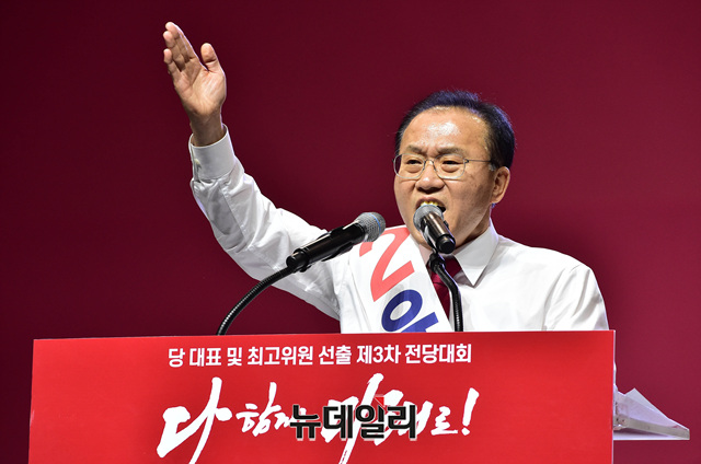 윤재옥 자유한국당 최고위원 후보가 18일 오후 경기 일산 킨텍스에서 열린 2·27 전당대회에서 정견발표를 하고 있다.당대표 후보에는 김진태, 황교안, 오세훈이 나섰다. 최고위원에는 김정희 한국무궁화회 총재, 윤재옥 의원, 윤영석 의원, 김순례 의원, 조대원 경기 고양시정 당협위원장, 김광림 의원, 조경태 의원, 정미경 전 의원 등 8명이 나섰다. 청년 최고위원에는 신보라, 김준교, 이근열, 박진호 등 4명이 이름을 올렸다.이번 전당대회는 선거인단 투표와 국민여론 조사결과, 전당대회 현장에서 진행되는 대의원 투표결과를 합산해 새지도부를 선출한다. 투표결과는 오후 7시 발표 예정이다.