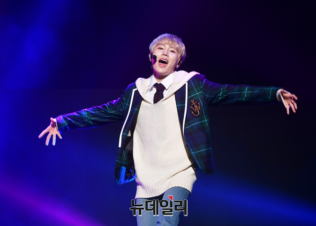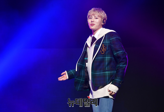 '워너원' 출신 하성운이 27일 오후 서울 광진구 예스24 라이브홀에서 첫 번째 미니앨범 'My Moment(마이 모멘트)' 쇼케이스에서 수록곡 '무대'를 선보였다.