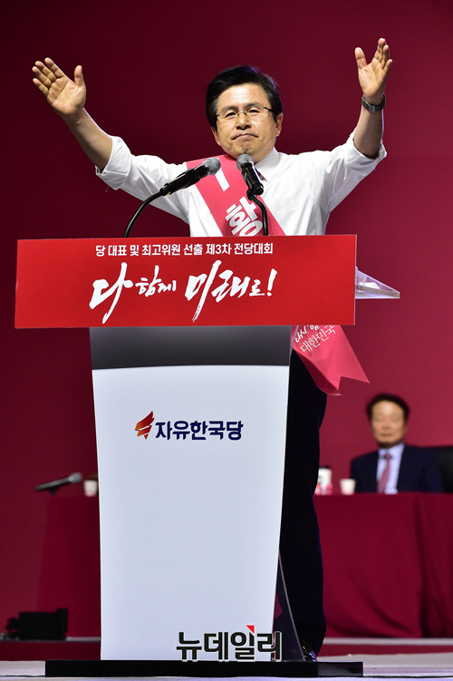 황교안 자유한국당 당대표 후보가 27일 오후 경기 일산 킨텍스에서 열린 2·27 전당대회에서 정견발표를 하고 있다.당대표 후보에는 김진태, 황교안, 오세훈이 나섰다. 최고위원에는 김정희 한국무궁화회 총재, 윤재옥 의원, 윤영석 의원, 김순례 의원, 조대원 경기 고양시정 당협위원장, 김광림 의원, 조경태 의원, 정미경 전 의원 등 8명이 나섰다. 청년 최고위원에는 신보라, 김준교, 이근열, 박진호 등 4명이 이름을 올렸다.이번 전당대회는 선거인단 투표와 국민여론 조사결과, 전당대회 현장에서 진행되는 대의원 투표결과를 합산해 새지도부를 선출한다. 투표결과는 오후 7시 발표 예정이다.