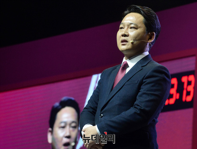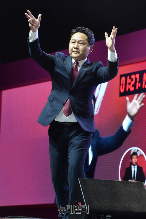 이근열 자유한국당 청년최고위원 후보가 27일 오후 경기 일산 킨텍스에서 열린 2·27 전당대회에서 지지를 호소하고 있다. 투표결과는 오후 7시 발표 예정이다. (경기 고양=박성원 기자)