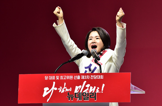 신보라 자유한국당 청년최고위원 후보가 18일 오후 경기 일산 킨텍스에서 열린 2·27 전당대회에서 정견발표를 하고 있다.당대표 후보에는 김진태, 황교안, 오세훈이 나섰다. 최고위원에는 김정희 한국무궁화회 총재, 윤재옥 의원, 윤영석 의원, 김순례 의원, 조대원 경기 고양시정 당협위원장, 김광림 의원, 조경태 의원, 정미경 전 의원 등 8명이 나섰다. 청년 최고위원에는 신보라, 김준교, 이근열, 박진호 등 4명이 이름을 올렸다.이번 전당대회는 선거인단 투표와 국민여론 조사결과, 전당대회 현장에서 진행되는 대의원 투표결과를 합산해 새지도부를 선출한다. 투표결과는 오후 7시 발표 예정이다.