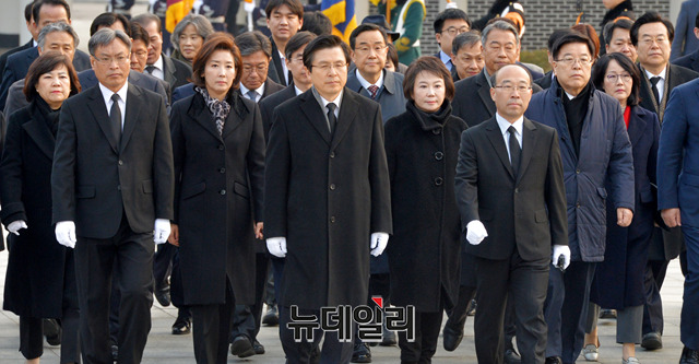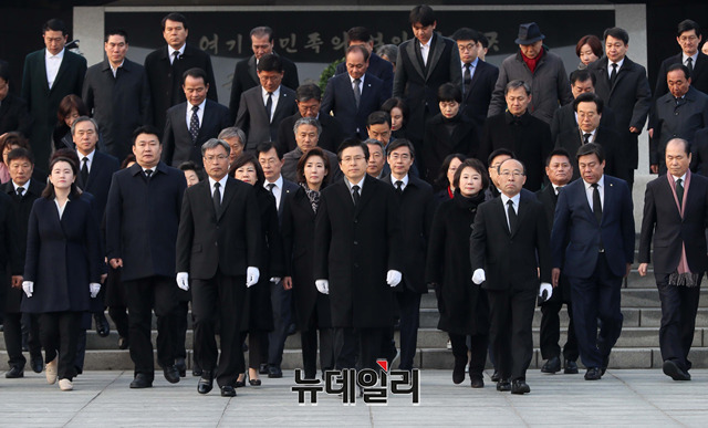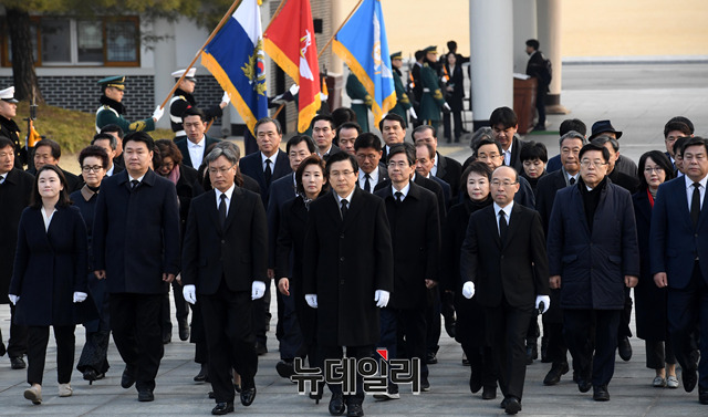황교안 자유한국당 신임 당대표와 지도부가 28일 오전 서울 동작구 국립서울현충원을 찾아 참배하기 위해 현충탑으로 이동하고 있다.