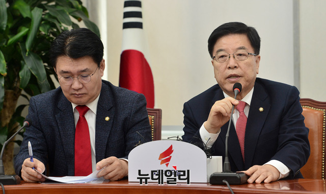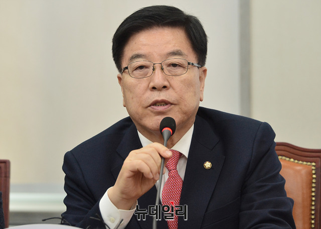 김광림 자유한국당 최고위원이 28일 오전 국회에서 열린 최고위원회의에서 모두발언을 하고 있다.