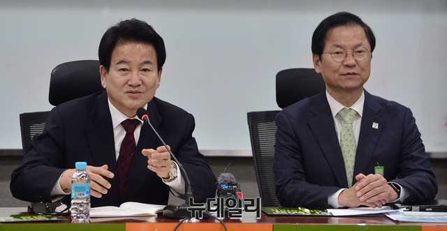 정동영 민주평화당 대표가 28일 오전 국회 의원회관에서 열린 민주평화연구원 토론회 '일제 강점 역사 청산의 원칙과 과제' 토론회에서 인사말을 하고 있다.