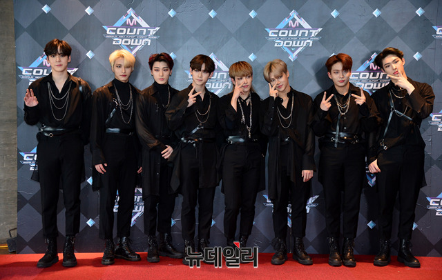 아이돌그룹 에이티즈가 28일 오후 서울 마포구 CJ E&M센터에서 열리는 '엠카운트다운' 생방송을 위해 입장하며 포토타임을 갖고 있다. 이날 출근길 포토타임은 가수 하성운, 효민, 이달의소녀 등 15팀의 아티스트가 참석했다. 오후 6시 생방송.