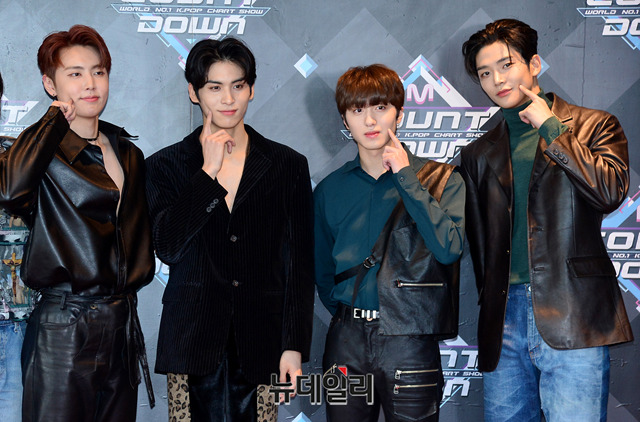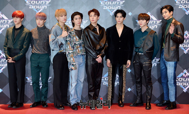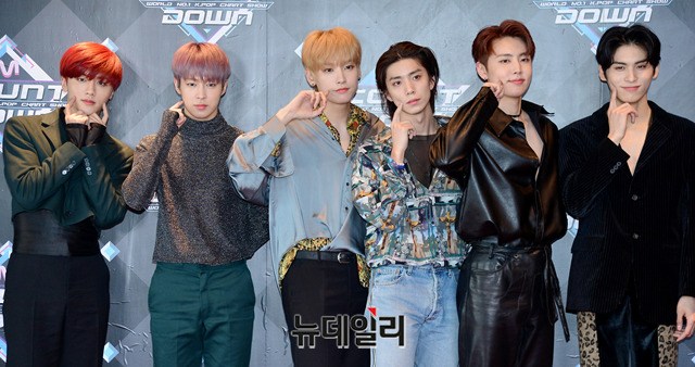 아이돌그룹 SF9이 28일 오후 서울 마포구 CJ E&M센터에서 열리는 '엠카운트다운' 생방송을 위해 입장하며 포토타임을 갖고 있다.