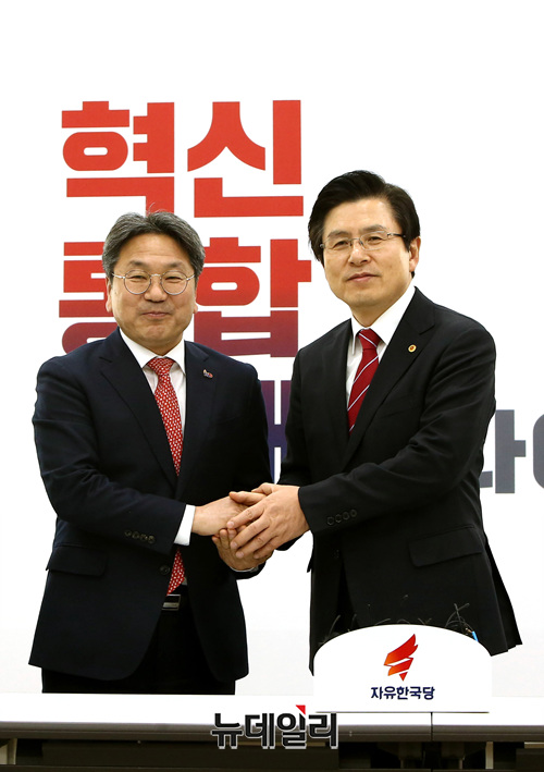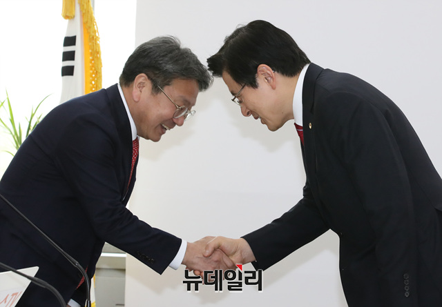 [포토] 악수 나누는 황교안 대표와 강기정 정무수석