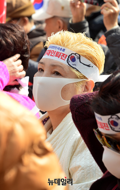 총궐기대회에 참석한 시민들이 3.1절 100주년을 맞은 1일 오후 서울 남대문 인근에서 열린 '자유 대한민국 수호를 위한 국민 총궐기 대회'에 참석해 피켓을 흔들고 있다.