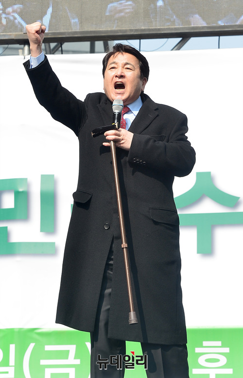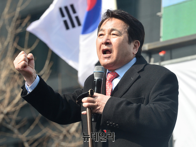 심재철 자유한국당 의원이 1일 오후 서울 중구 구 삼성본관 앞에서 열린 '자유 대한민국 수호를 위한 국민 총궐기 대회'에 참석해 인사말을 하고 있다.