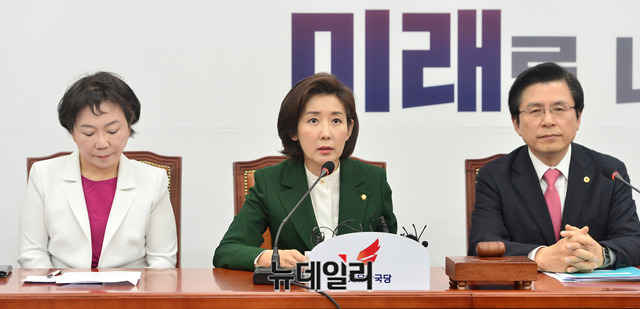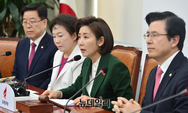 나경원 자유한국당 원내대표가 4일 오전 국회에서 열린 최고위원회의에서 모두발언을 하고 있다