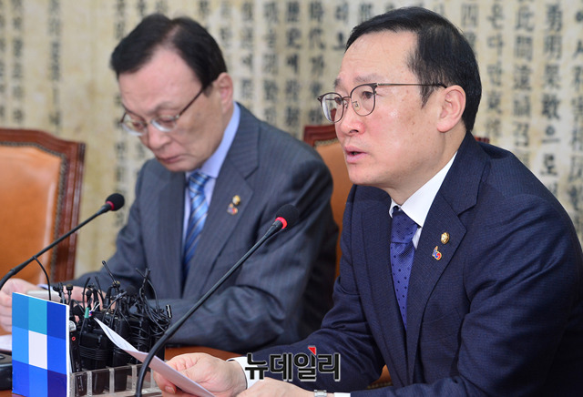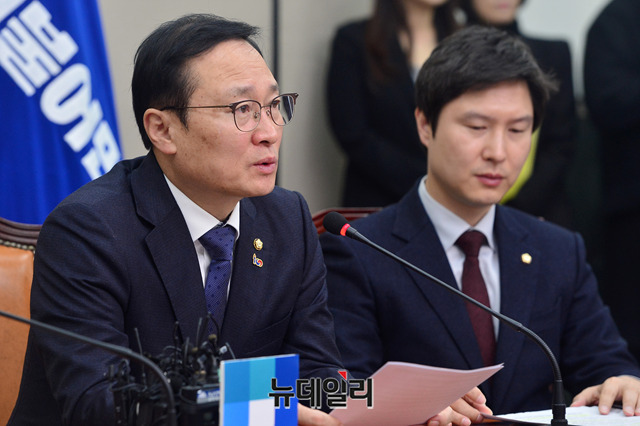 홍영표 더불어민주당 원내대표가 4일 오전 국회에서 열린 최고위원회의에서 모두발언을 하고 있다.