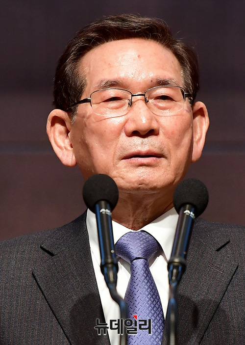 김승규 전 국정원장이 4일 오후 서울 중구 한국프레스센터에서 열린 '이승만 대학 설립 발기인대회'에서 축사를 하고 있다.