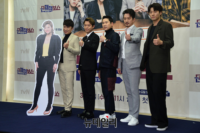 '문제적 보스' 출연진이 4일 오후 서울 마포구 스탠포드 호텔에서 열린 tvN 예능 프로그램 '문제적 보스' 제작발표회에 참석해 포토타임을 갖고 있다.