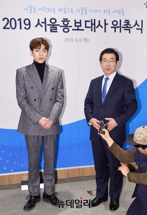 '블락비' 출신 가수 지코가 4일 오후 서울 중구 서울시청에서 열린 홍보대사 위촉식에서 박원순 서울시장과 기념촬영을 했다. 이날 홍보대사로 위촉된 지코는 서울시를 알리고 시정을 홍보하는 활동을 한다.