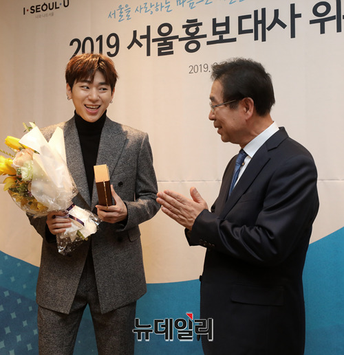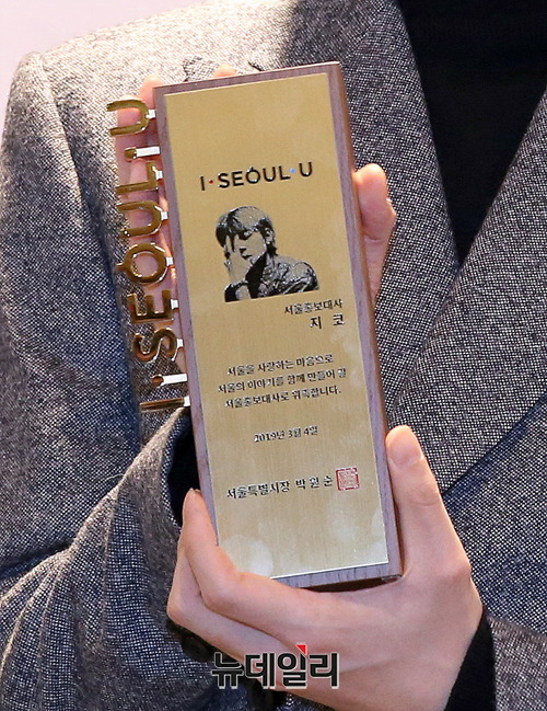 '블락비' 출신 가수 지코가 4일 오후 서울 중구 서울시청에서 열린 홍보대사 위촉식에서 홍보대사 위촉패를 들고 기념촬영을 했다. 이날 홍보대사로 위촉된 지코는 서울시를 알리고 시정을 홍보하는 활동을 한다.