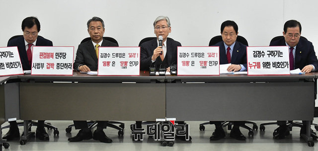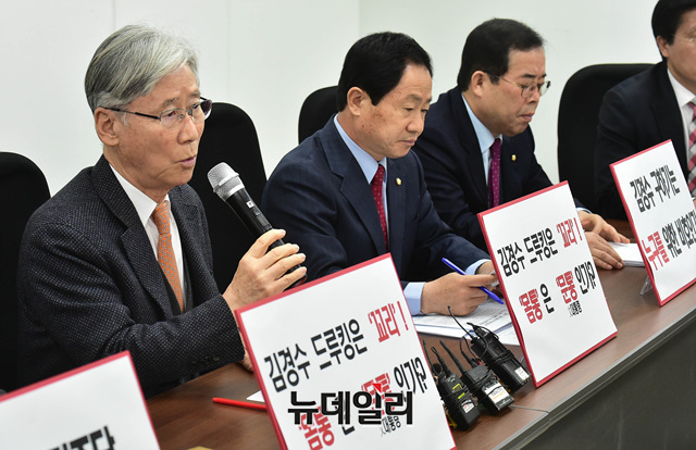 여상규 자유한국당 김경수 드루킹 게이트 진상규명특별위원회 위원장이 5일 오전 국회에서 열린 김경수·드루킹 게이트 진상규명특별위원회의에서 발언하고 있다.