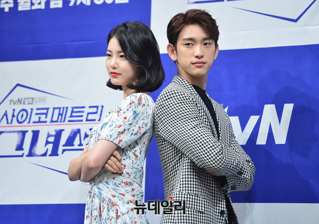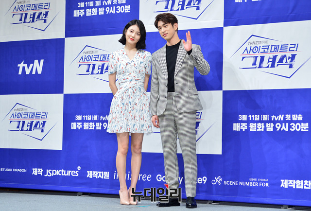 가수 박진영과 배우 신예은이 5일 오후 서울 강남구 임피리얼팰리스호텔에서 열린 tvN 새 월화드라마 '사이코메트리 그녀석' 제작발표회에 참석해 포토타임을 갖고 있다.