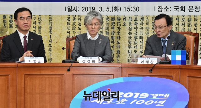 이해찬 더불어민주당 대표가 5일 오후 국회에서 열린 한반도평화 관련 위원회 연석회의에서 제2차 북미정상회담 평가 및 후속조치에서 발언했다.