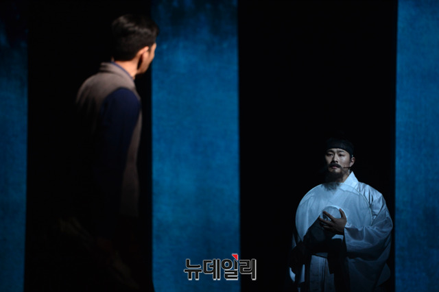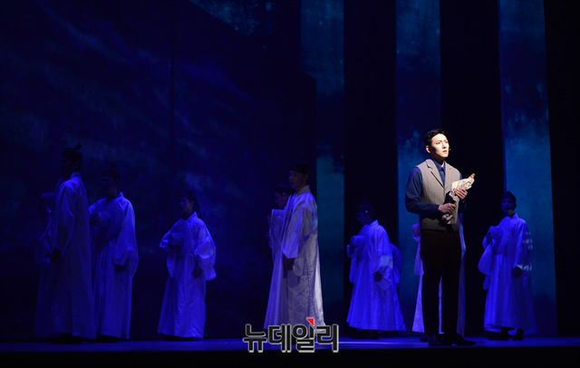 배우 지창욱이 5일 서울 강남구 광림아트센터 BBCH홀에서 열린 뮤지컬 '신흥무관학교' 시연회에서 연기를 펼치고 있다.