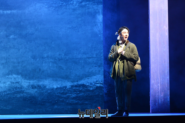 배우 조권이 5일 서울 강남구 광림아트센터 BBCH홀에서 열린 뮤지컬 '신흥무관학교' 시연회에서 연기를 펼치고 있다.