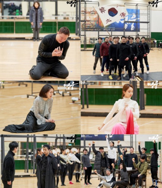 올해 10주년을 맞은 창작뮤지컬 '영웅' 서울 공연이 오는 12일 마지막 티켓 오픈을 앞두고 연습 현장 사진을 공개했다.공개된 사진 속에서 뮤지컬 '영웅' 팀은 주·조역부터 앙상블 배우들까지 실제 공연을 방불케 하는 열연을 펼치고 있다.정성화는 어머니 조마리아 앞에서 비통한 표정으로 두 손을 모으고 '영웅' 넘버를 부르며 극중 배역인 안중근 의사의 인간적인 고뇌를 오롯이 표현했다. 양준모는 붕대를 감은 손으로 '단지동맹' 넘버를 부르며 독립 의지를 다지는 안중근에 완벽 몰입했다.설희 역을 맡은 정재은은 조선의 마지막 궁녀 설희의 한을 절절하게 연기하고 있다. 같은 역의 린지(임민지)는 아름다운 춤 선과 대비되는 비장한 표정으로 눈길을 사로잡는다.2009년 10월 초연된 뮤지컬 '영웅'은 안중근 의사의 마지막 1년을 집중 조명해 조국을 위해 헌신한 애국지사의 면모와 운명 앞에서 고뇌하는 인간의 모습을 깊이 있게 담아낸다.오는 9일부터 4월 21일까지 세종문화회관 대극장에서 공연된다.[사진=에이콤]