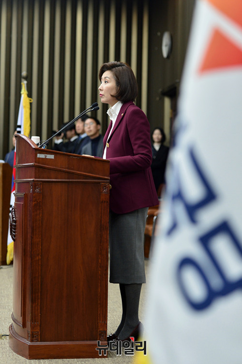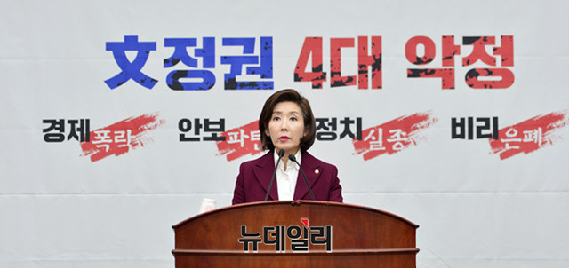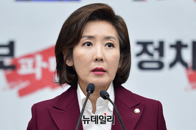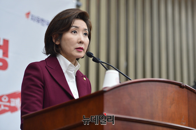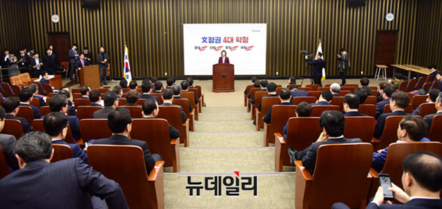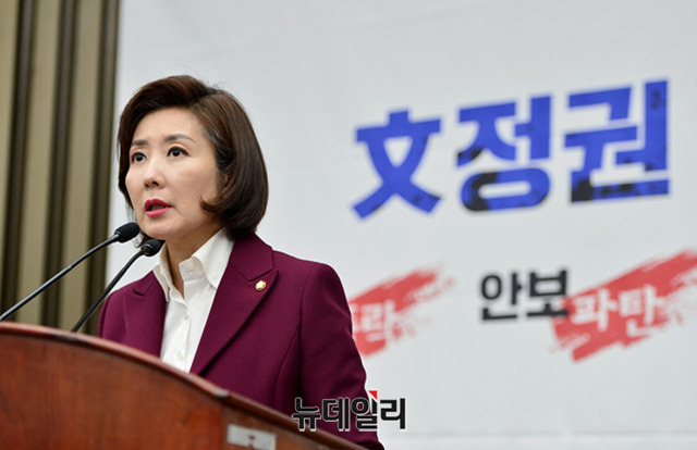 나경원 자유한국당 원내대표가 7일 오후 국회에서 열린 의원총회에서 모두발언을 하고 있다.