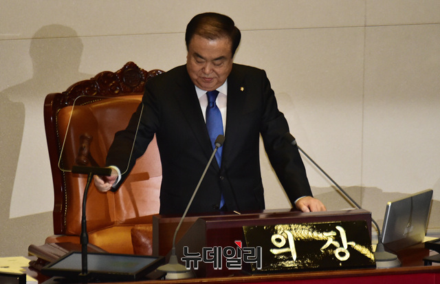 문희상 국회의장이 7일 오후 국회에서 열린 제367회 국회(임시회) 제1차 본회의에서 의사진행을 하고 있다.