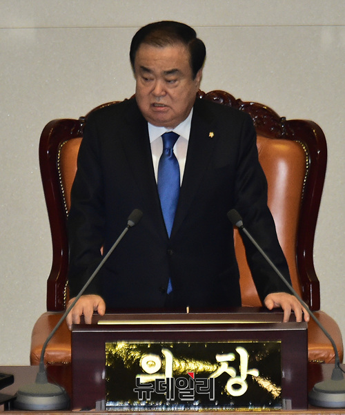 문희상 국회의장이 7일 오후 국회에서 열린 제367회 국회(임시회) 제1차 본회의에서 개회사를 하고 있다.