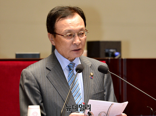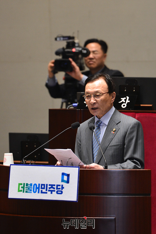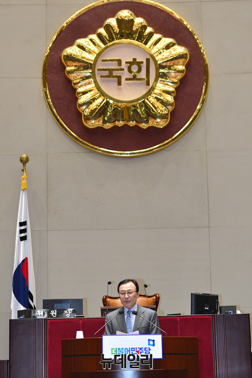 이해찬 더불어민주당 대표가 7일 오후 국회에서 열린 의원총회에서 모두발언을 하고 있다.