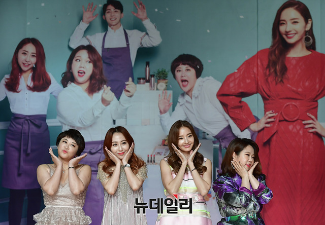 고우나(왼쪽부터), 리웬웬, 한채영, 홍현희가 8일 오후 서울 강남구 일지아트홀에서 열린 '한채영 부티크(Boutique)' 제작발표회에서 포토타임을 갖고 있다. 한채영을 비롯해 홍현희, 고우나, 리웨웬, 장역문 등이 출연한다. 8일 밤 9시 50분 첫 방송, 다음주 부터는 밤 10시 10분에 방송된다.