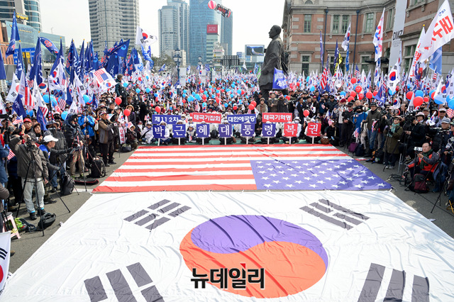 [포토] '박근혜 대통령 탄핵무효' 외치는 집회 참석자들