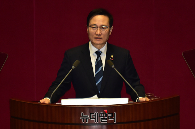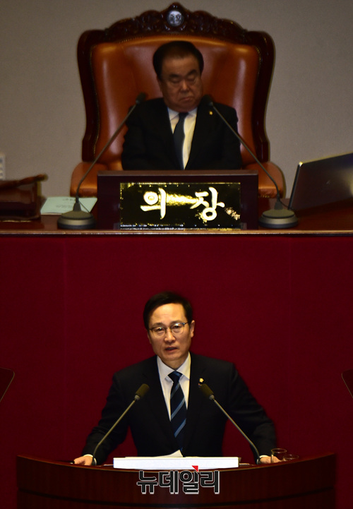 홍영표 더불어민주당 원내대표가 11일 오전 국회 본회의장에서 교섭단체 대표연설을 하고 있다.
