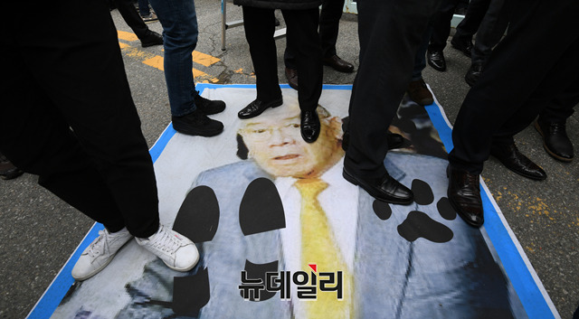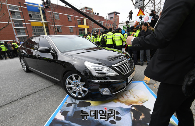[포토] 전두환 법원 도착에 인근초등학교 "전두환은 물러가라"