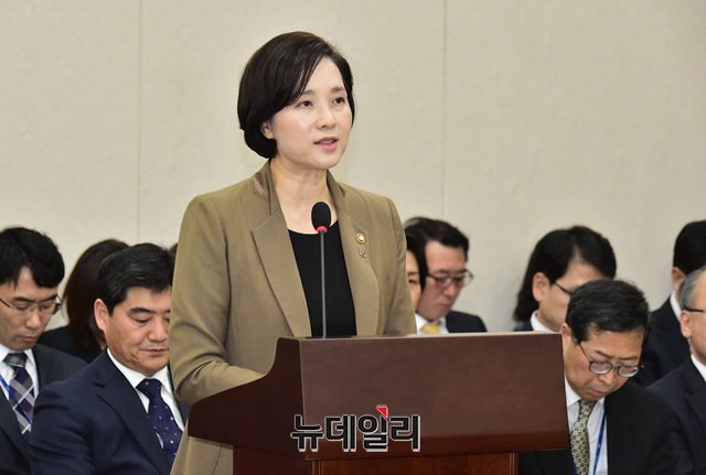 유은혜 사회부총리 겸 교육부 장관이 11일 오후 국회에서 열린 교육위원회 전체회의에 참석해 업무보고를 하고 있다.