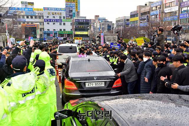 [포토] 법원 나서는 전두환, 몰린 시민들로 아수라장