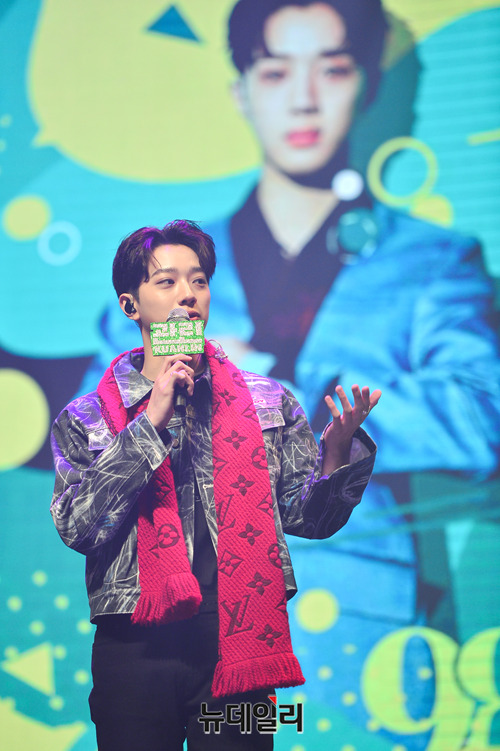 가수 라이관린이 11일 오후 서울 광진구 예스24라이브홀에서 열린 첫번째 미니앨범 발매기념 쇼케이스에서 인터뷰를 하고 있다.