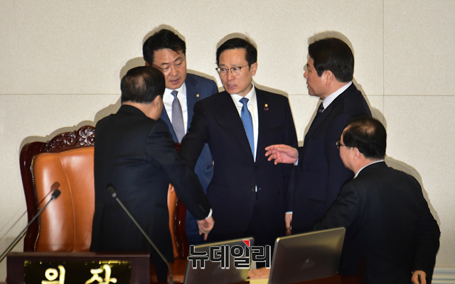 [포토] 의장석으로 올라온 홍영표 더불어민주당 원내대표