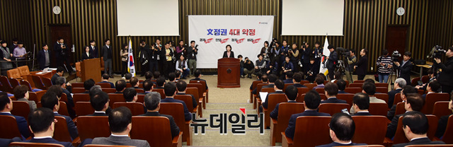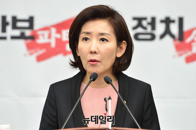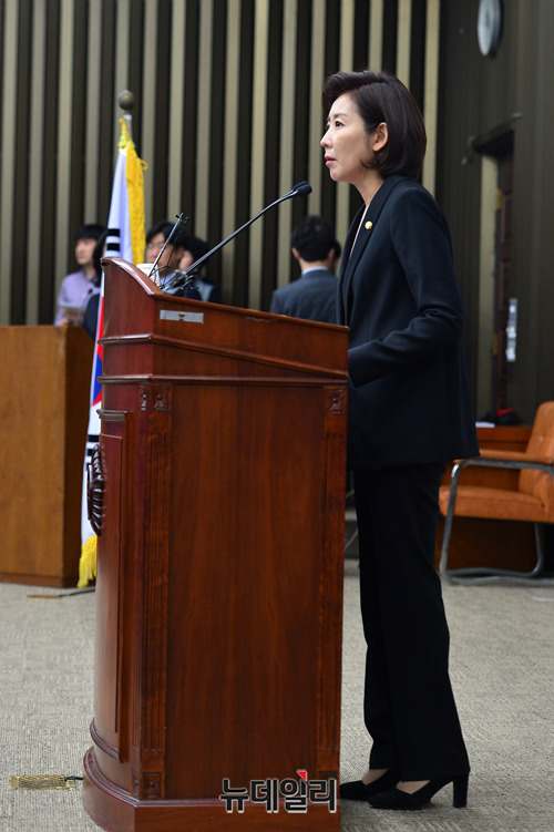 나경원 자유한국당 원내대표가 13일 오전 국회에서 열린 자유한국당 의원총회에서 모두발언을 하고 있다.
