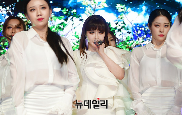 2NE1 출신 가수 박봄이 13일 오후 서울 강남구 일지아트홀에서 싱글앨범 'Spring(봄)' 쇼케이스에서 타이틀곡 무대를 선보이고 있다.