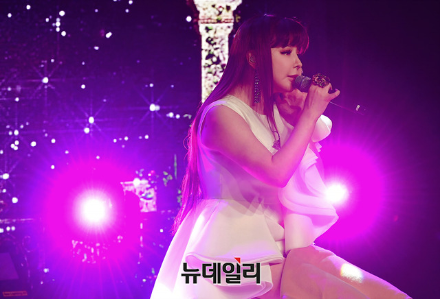 2NE1 출신 가수 박봄이 13일 오후 서울 강남구 일지아트홀에서 싱글앨범 'Spring(봄)' 쇼케이스에서 수록곡 무대를 선보이고 있다.
