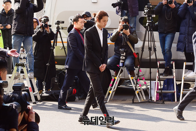 [포토] 굳은 표정으로 경찰 출석하는 가수 정준영