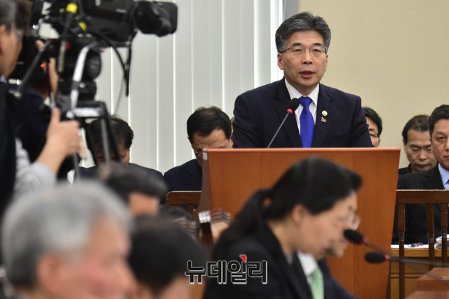 민갑룡 경찰청장이 14일 오전 국회에서 열린 행전안전위원회 전체회의에서 강남 클럽 버닝썬 사건 관련 현안보고를 하고 있다.