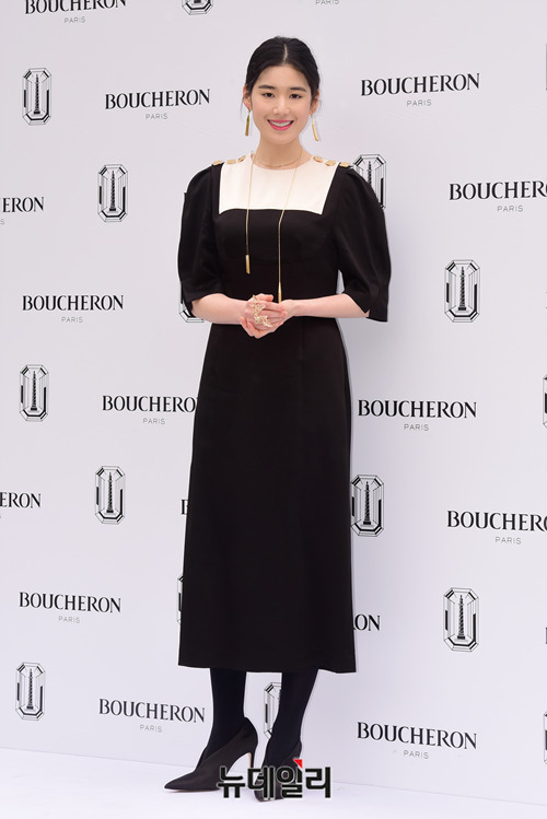 배우 정은채가 14일 오후 서울 중구 신라호텔 영빈관에서 진행된 주얼리 브랜드 부쉐론 행사에서 포토타임을 갖고 있다.